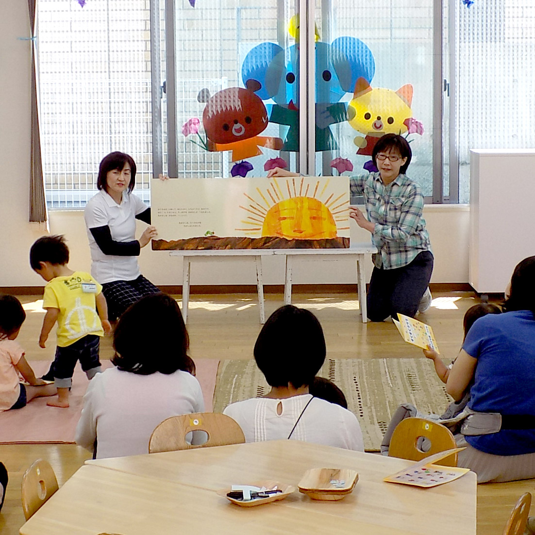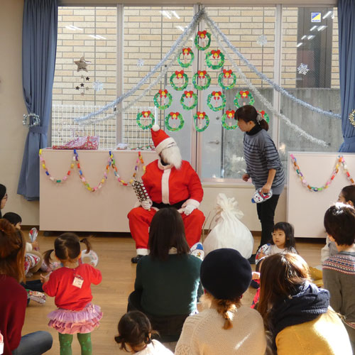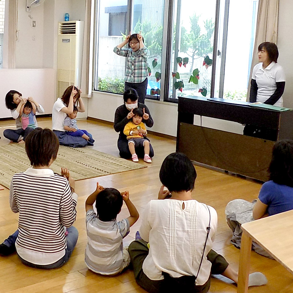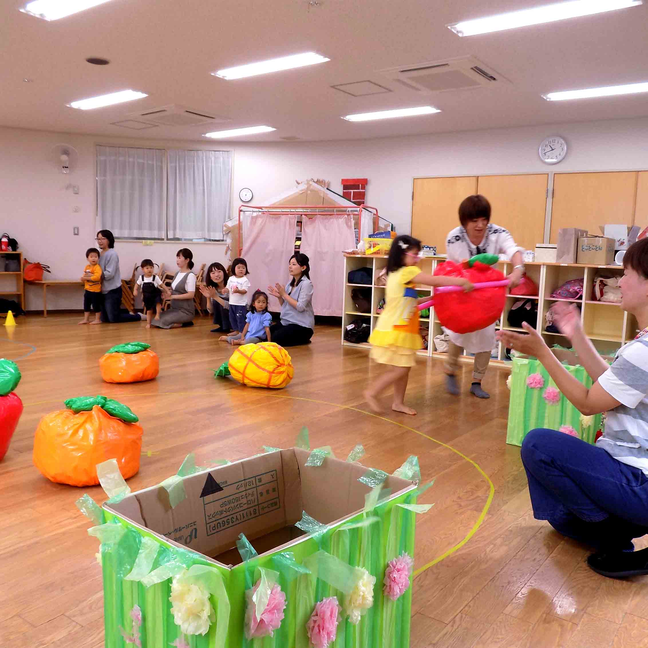当園では、未だ保育園や幼稚園に通っていないお子さま(1歳〜4歳)を対象に、月1回遊んだり制作をしたり、同年齢または異年齢のお子さまと交流を持ちながら、保護者の方とご一緒に過ごして頂く集まりを開催しています。